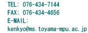 | 知的財産マネージャーが配置され、いつでも相談に応じます。 産学官連携コーディネーターが配置され、共同研究等の開発を行います。 研究協力課・リエゾンオフィス TEL:076-434-7144 / 7184 FAX:076-434-4656 E-MAIL:sangaku@ms.totyama-mpu.ac.jp |